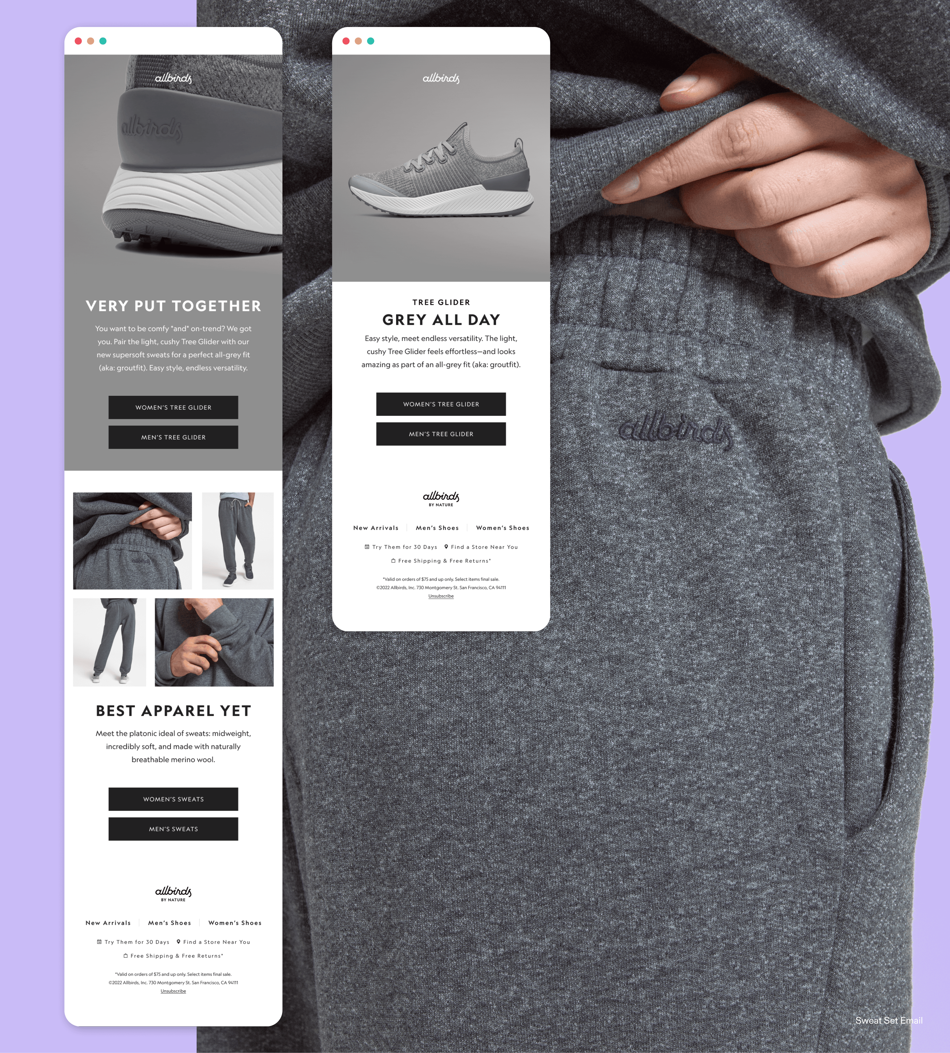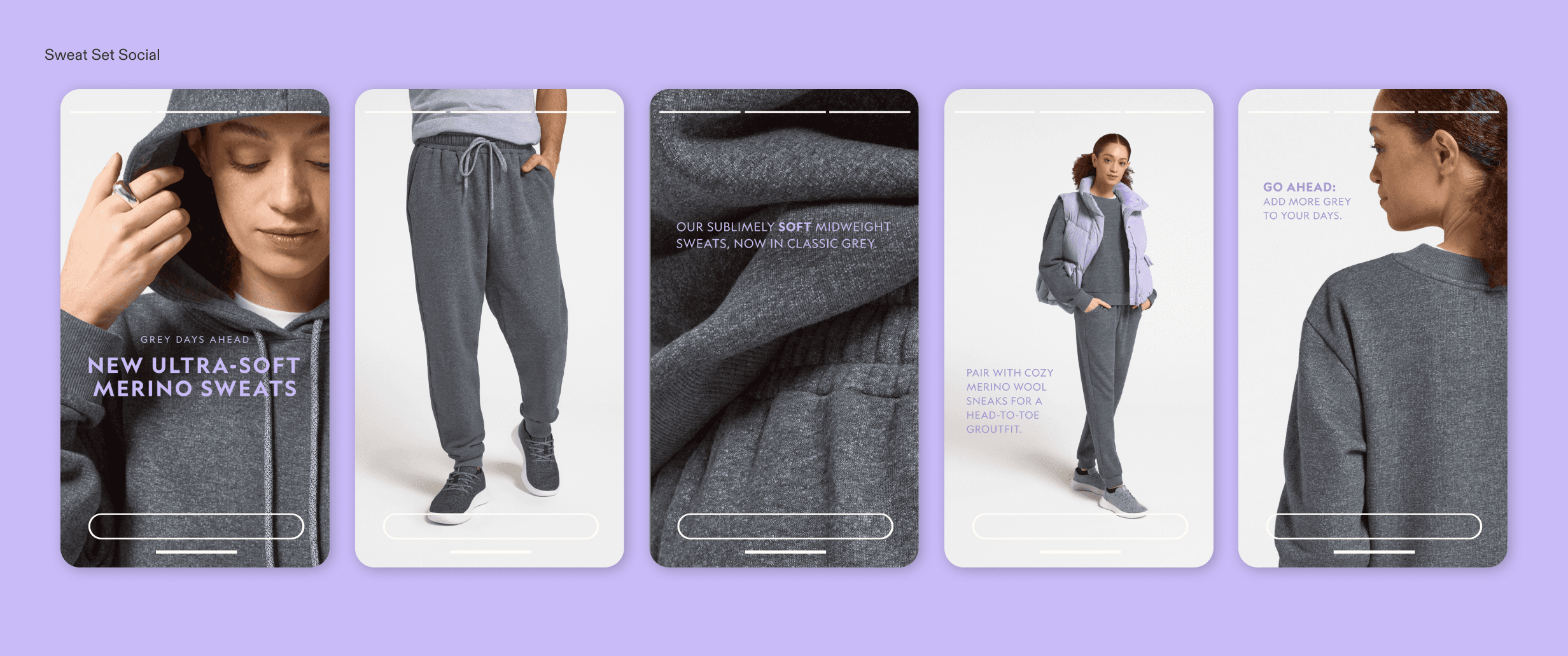 A set of social ads and emails were also asked for to highlight Allbird's new sweatsuit sets.
