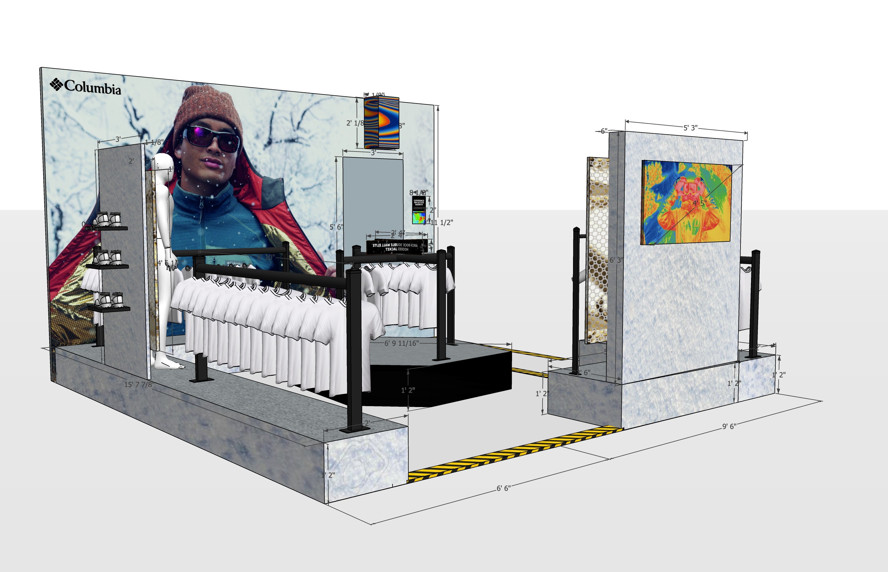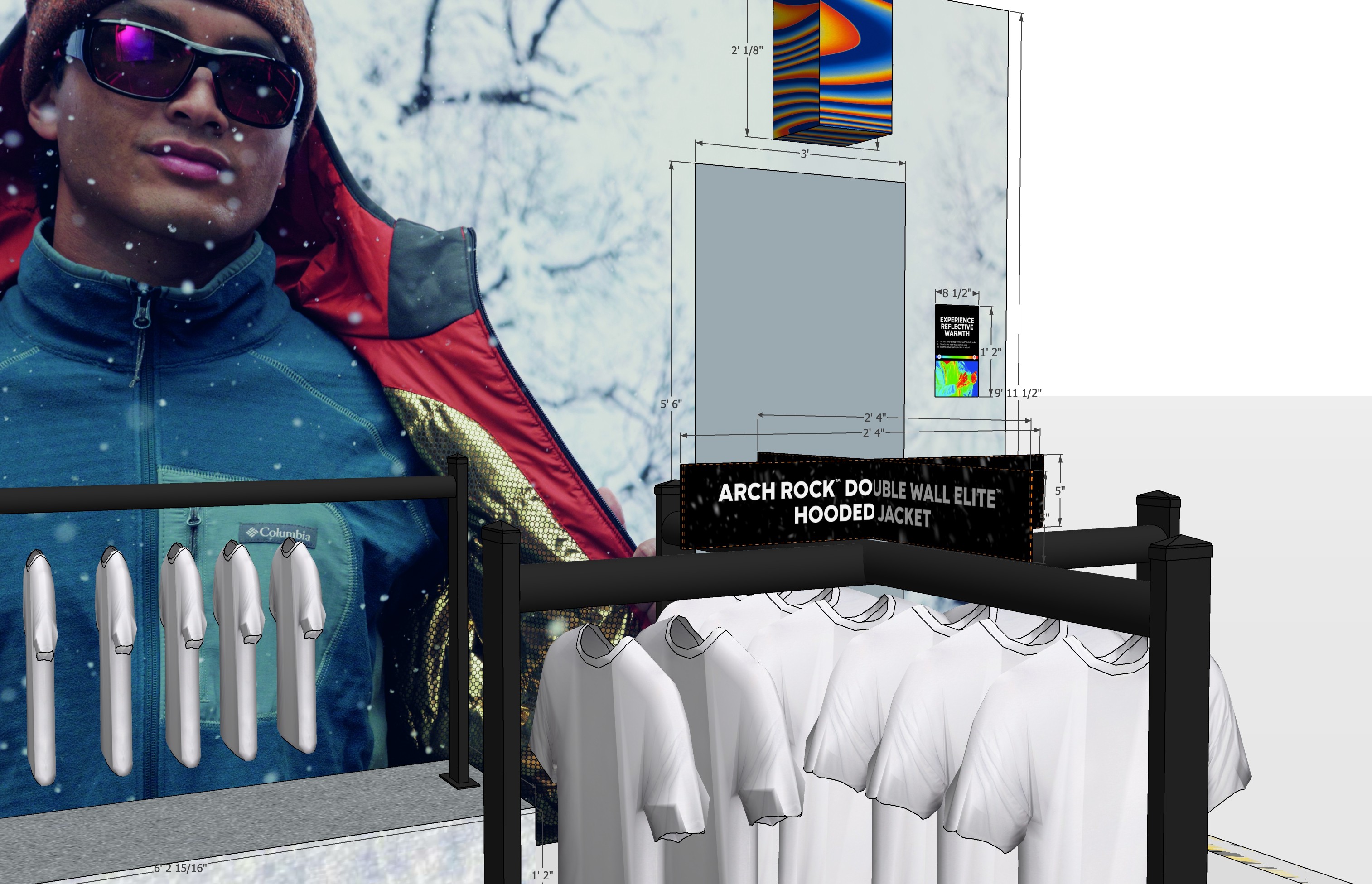 To help promote Columbia’s new Omni-Heat Infinity jacket Archrock, I was tasked with developing an Experience Zone for the Employee Store. These Experience Zones are an opportunity for customers to feel excited about Columbia and enthusiastically connect with products.
