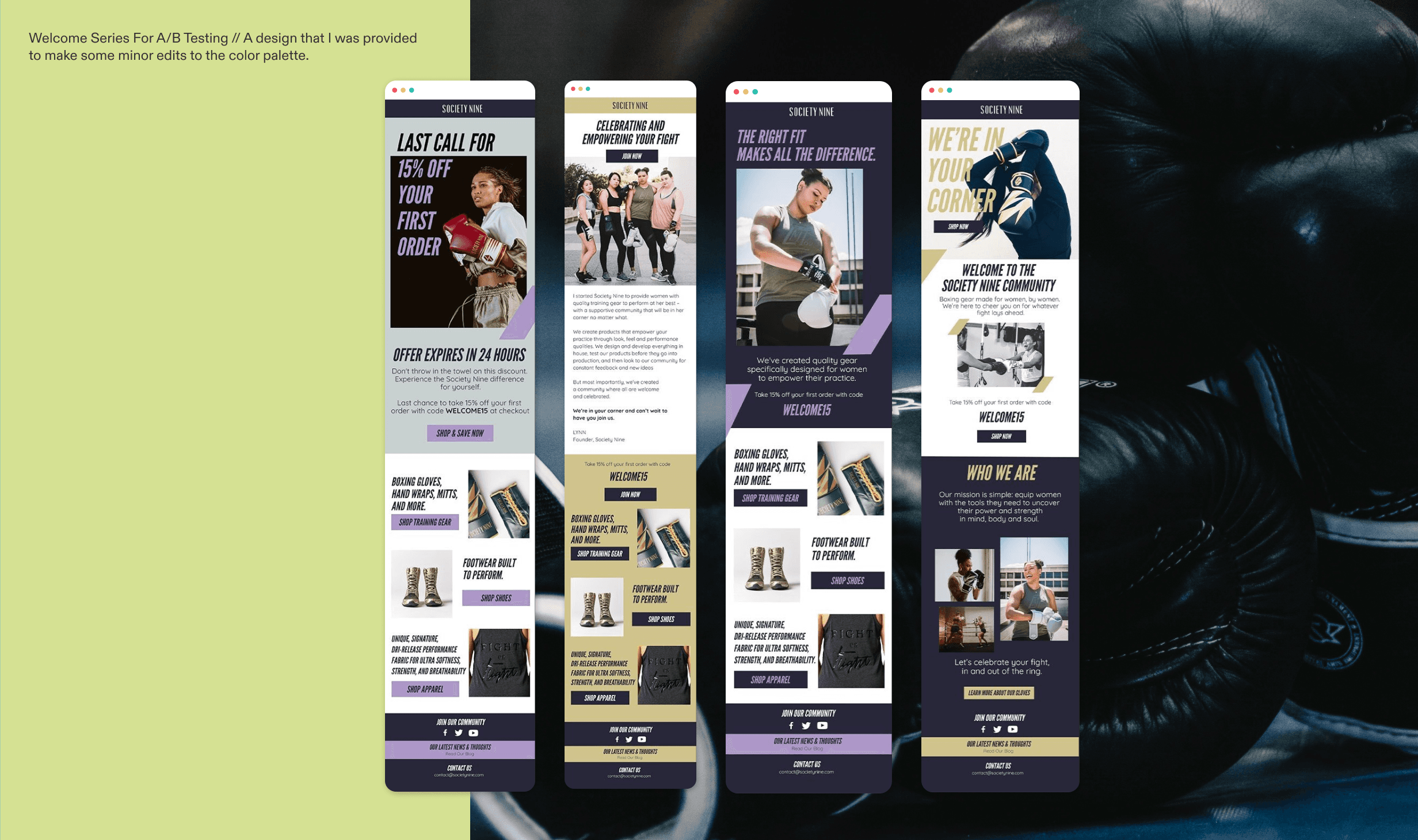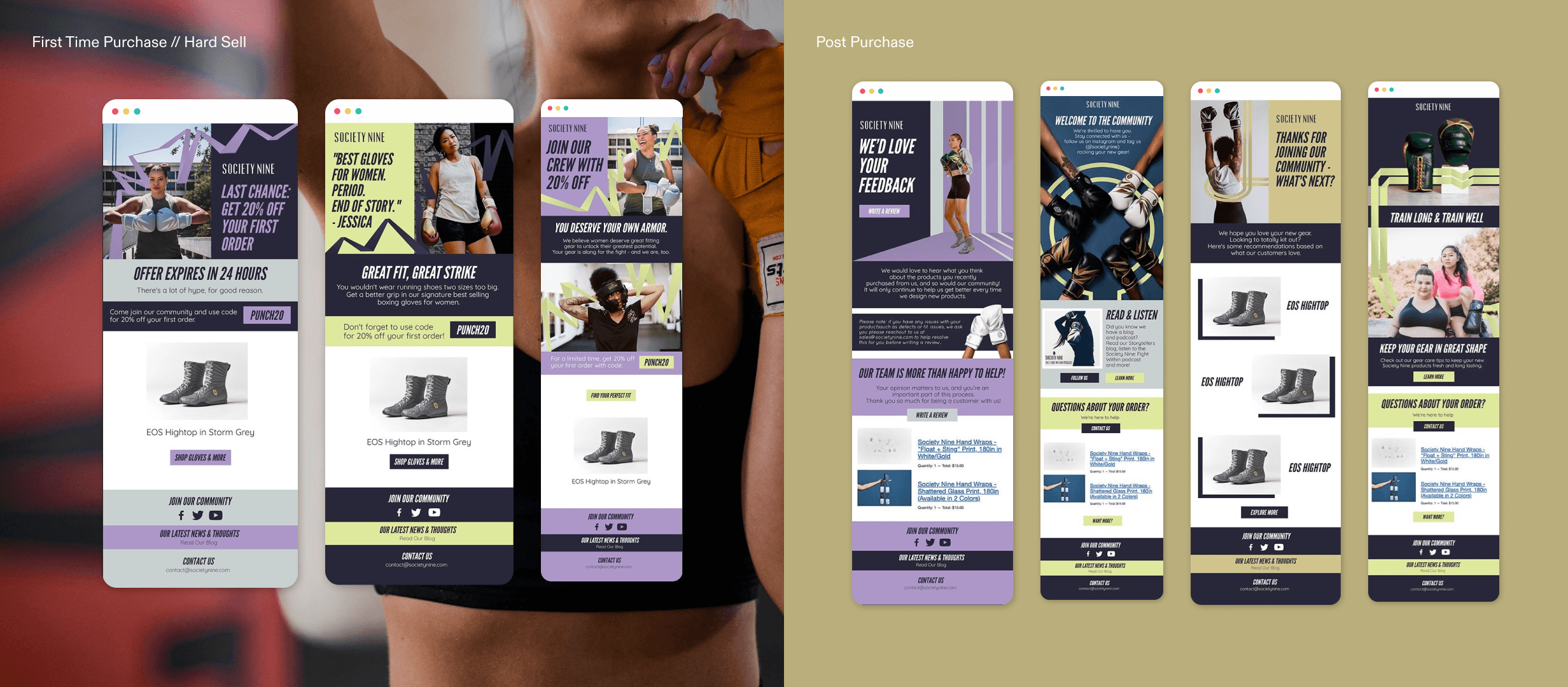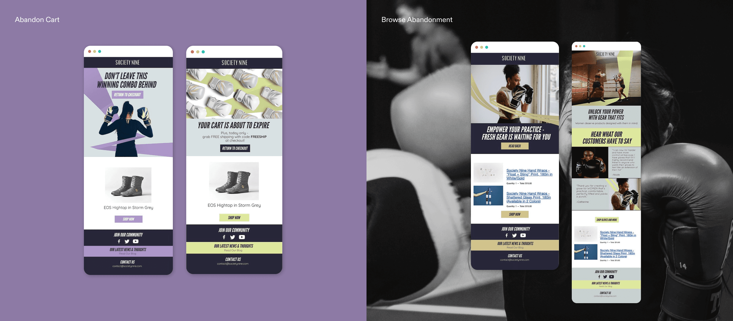 The ask was to create an updated design using the new brand colors while also refreshing the previous design to conduct some a/b testing. We felt it best to maintain a consistent look/feel throughout since the same customer may trigger more than one email.